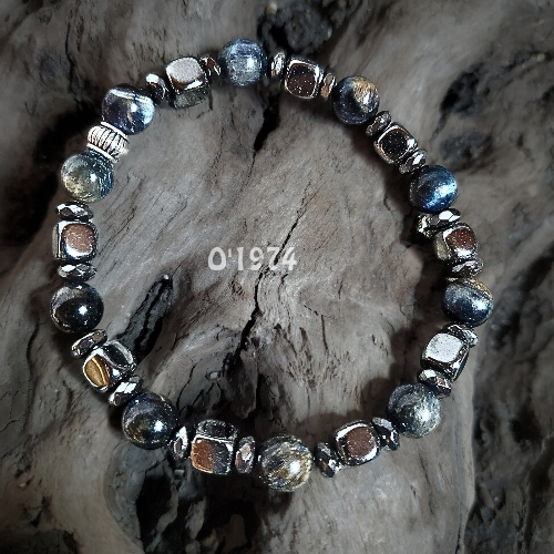 Bracelet 8mm en œil de tigre bleu et hématite.